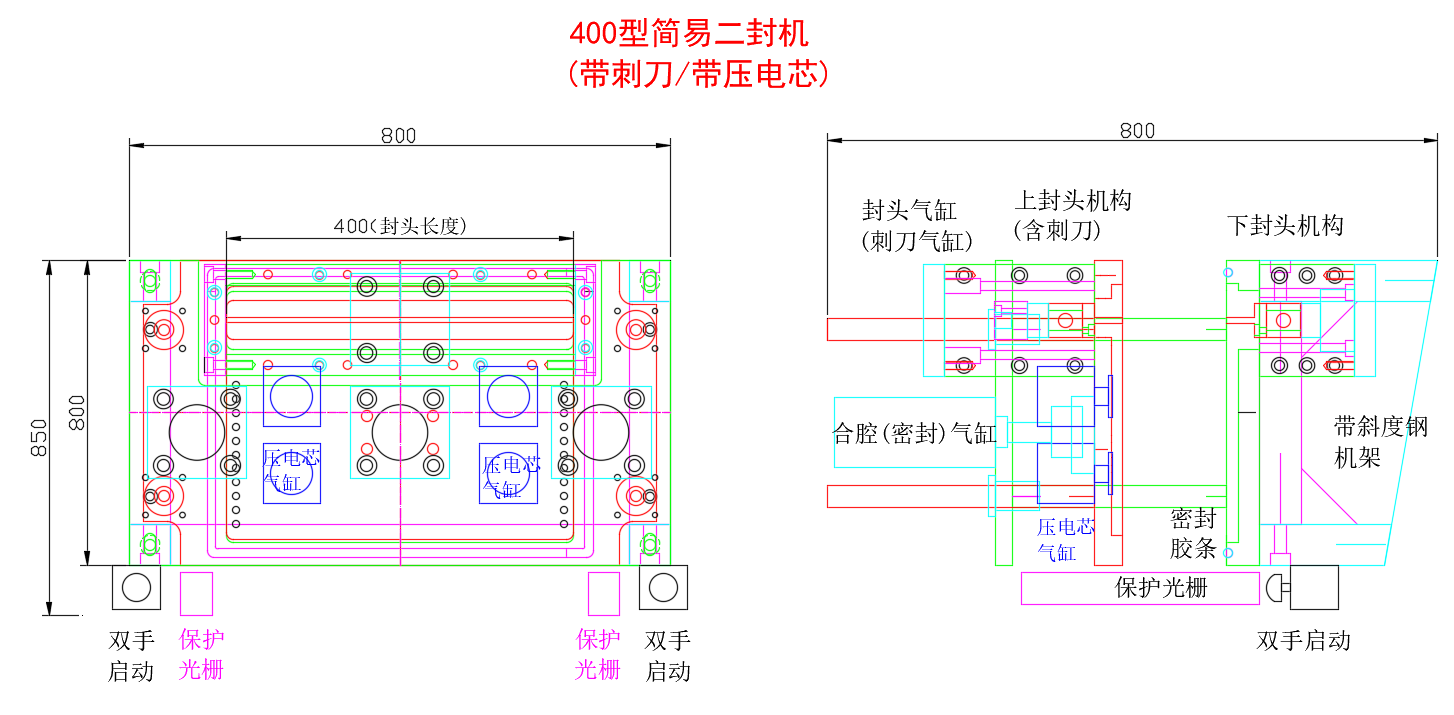 1.雙按鈕操作,雙面加熱,溫度異常報(bào)警,光幕安生保護(hù)。